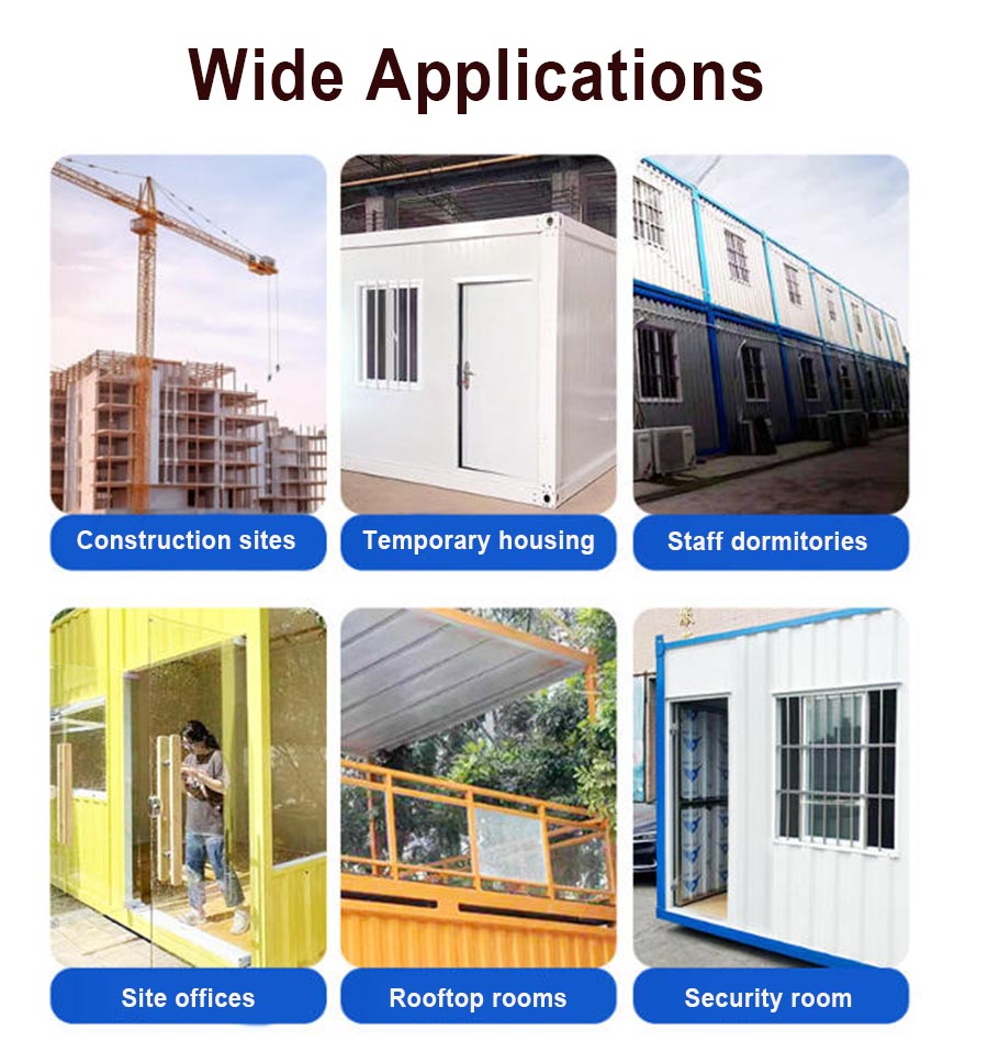 Это сборное здание (контейнерный офис и сборный дом из грузового контейнера) подходит для строительных площадок, временного жилья, общежитий для персонала, офисов на стройплощадках, комнат на крыше и комнат охраны — практичное и быстро устанавливаемое.