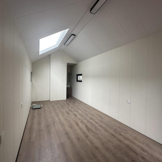 Наружные стены и крыша выполнены из изоляционных и водонепроницаемых материалов, таких как оцинкованные листы или алюминиевые панели с полиуретаном, обеспечивающие хорошую устойчивость к погодным условиям.