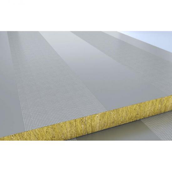 Оцинкованный стальной лист с цветным покрытием (внешняя панель) + Стекловата + Нетканый материал + Перфорированный оцинкованный стальной лист с цветным покрытием (внутренняя панель)