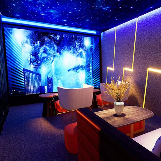 Этот роскошный миниатюрный дом оснащен встроенным проектором высокой четкости и акустическими настенными панелями, обеспечивающими захватывающие аудиовизуальные ощущения кинематографического качества в компактном уединенном пространстве.
